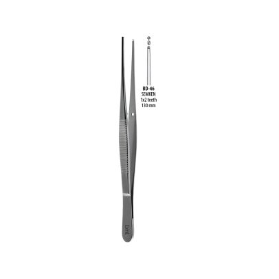 BMT GD - Tissue forcep semken, 1x2 teeth, straight, 13cm