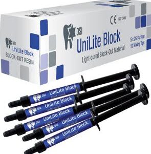 DSI UniLite Block-Out Resin provides reservoir space, covers up individual bleaching tray and protects it from the sanding process. Due to its unique formula, UniLite Block can fill up the voids that are have not been captured in the impression. It is used for laboratory procedures such as model and