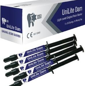 DSI UniLite Dam is a light-cured resin barrier used to isolate and protect soft tissue with an impervious seal (dubbed "Light Curing Whitening Dam"). The DSI UniLite Dam resin material based on light curing technology and serves for the gingival protection purposes. It saves gums from any possible damage caused
