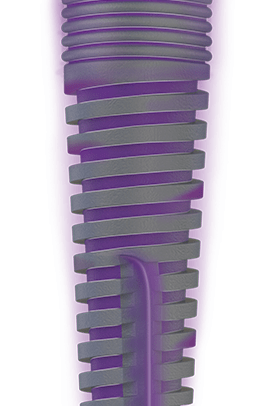 Immediate loading in a wide variety of cases of different bone types is possible thanks to the great stability of DSI Blue Line Spiral Implants which are designed with patented technology. DSI Blue Line iconic "aggressive" geometric shape includes dual threads, two spiral channels stemming from the apex, micro-grooves on