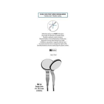 Doubl side rhodium mirror #4 o22mm, simpl stem, 6pc