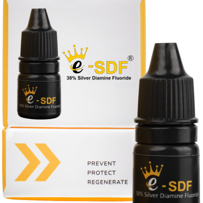 e-SDF® e-SDF është një lëng anti-mikrobial dhe ri-mineralizues i aplikuar klinikisht për të kontrolluar dhe ndaluar kariesin aktiv dentar dhe për të ndaluar mbindjeshmërinë. Është një alternativë e sigurt dhe pa dhimbje ndaj procedurave tradicionale të shpimit të zgavrës me fuqinë e argjendit dhe fluorit. Argjendi vepron si një agjent